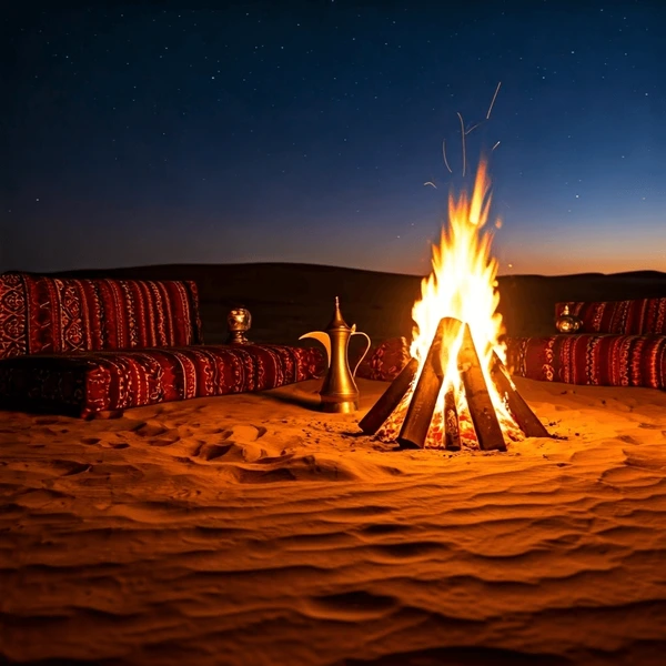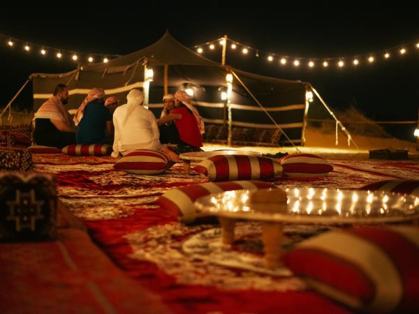 Gather around the fire with a cup of Arabic tea and unwind as the desert cools around you.