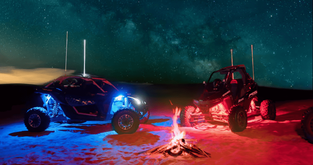 Experience the thrill of riding through the Dubai desert under a starlit sky.